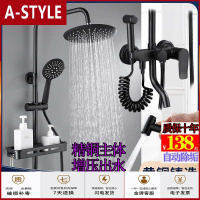 苏宁放心购家用恒温黑色淋浴花洒套装全铜挂墙式浴室洗澡沐浴器淋雨增压喷头A-STYLE