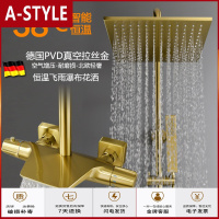 苏宁放心购瀑布全铜拉丝哑光金色恒温淋浴花洒套装飞雨淋浴器喷头挂墙式A-STYLE