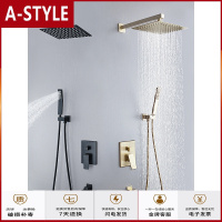 苏宁放心购黑色暗装隐藏嵌入墙预埋式喷头花洒冷热水龙头拉丝金淋浴吸顶A-STYLE