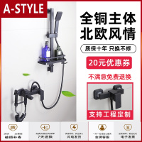 苏宁放心购北欧黑色铜淋浴花洒套装卫生间淋浴器家用浴缸冷热龙头增压花洒A-STYLE