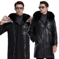 [送礼皮草可拆卸内胆]高端皮草春秋外套海宁真皮派克服男装春秋装中老年防寒男中长款狐狸大毛领貂绒内胆中年爸爸装尼克服大衣男