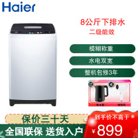 海尔(Haier)波轮洗衣机 8公斤容量 2级能效 全自动下排水节能家用模糊称重洗衣桶自洁小神童 XQB80-M106