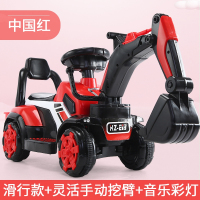 儿童挖掘机工程车男孩玩具车可坐可骑超大号钩机挖土机全电动挖机 红色滑行+手动挖臂