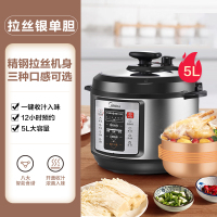 美的电压力锅家用智能5升多功能电高压锅饭煲饭锅 拉丝银-单胆款
