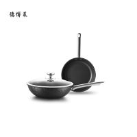 德博莱米斯特冰裂炒锅煎锅煤气燃气电磁炉通用30cm口径套装三件套