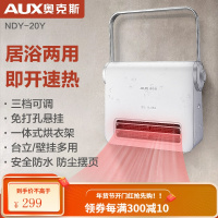 奥克斯605遥控挂壁暖风机家用节能省电防水居浴室壁挂取暖器电暖 白色(机械款)