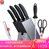 德国制造 双立人(ZWILLING)厨房刀具套装 含中西式菜刀 斩骨刀 水果刀 刀架 5件套装 Life 5件套