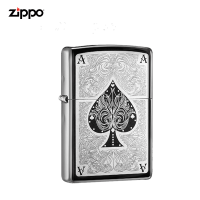 Zippo打火机正版ziipo黑冰雕刻暗花扑克牌黑桃A刻字28323