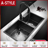 苏宁放心购洗菜盆双 厨房纳米水304不锈钢洗碗水池家用黑色洗碗池A-STYLE