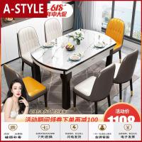 苏宁放心购实木餐桌钢化玻璃餐桌椅组合伸缩折叠餐桌大理石圆形饭桌子A-STYLE家具