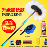 新款洗车刷子长柄伸缩棉线软毛掸子工具拖布专用拖把擦车除尘汽车用品 白色牛奶丝水刷8件套 抖音