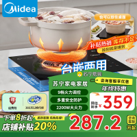 美的(Midea)电磁炉嵌入式电磁灶家用2200W大功率匀火加热火锅炉九档火力智能定时台嵌两用MC-DZ22S03E补贴