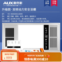 奥克斯风暖浴霸集成吊顶五合一体浴室卫生间排气扇阻燃机箱干燥去湿节能led照明灯全屋取暖暖风机 升级银双核动力[轻键智能开