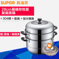 苏泊尔(SUPOR)304不锈钢多层蒸锅具SZ28CA1 蒸煮鱼锅家用多用途海鲜三层锅 蒸笼28cm复底加厚 电磁炉适用