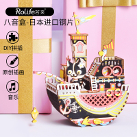 若态若来DIY手工木质八音盒音乐盒旋转木马拼图拼装生日礼物女生 猫趣