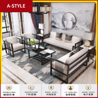 苏宁放心购新中式仿木纹铁艺沙发组合轻奢布艺办公会所别墅禅意洽谈桌椅卡座A-STYLE家具