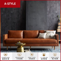 苏宁放心购美式轻奢皮艺沙发组合北欧简约现代大小户型家具后现代风沙发A-STYLE家具