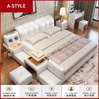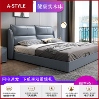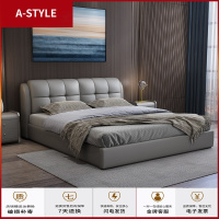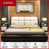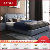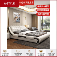 苏宁放心购真皮床现代简约主卧床实木1.8米皮床榻榻米双人床多功能智能婚床A-STYLE家具
