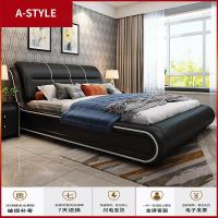 苏宁放心购真皮床现代简约主卧床实木1.8米皮床榻榻米双人床多功能智能婚床A-STYLE家具