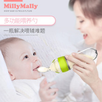 MillyMally硅胶米糊勺多功能喂养婴儿硅胶挤压勺米糊奶瓶米粉喂养勺宝宝餐具蓝色90ml