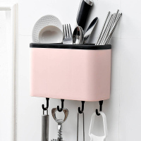 [北欧粉色配1个胶贴]厨房家用筷子筒多功能壁挂筷笼子创意沥水筷子笼筷子勺子餐具收纳