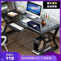 电脑桌台式桌古达简约现代家用经济型钢化玻璃电脑桌游戏用卧室电竞单人办公桌