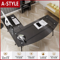 苏宁放心购L型办公桌简约现代拐角书桌个性转角电脑桌钢化玻璃写字台家用A-STYLE家具