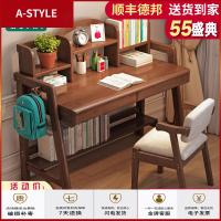 苏宁放心购实木书桌书架组合一体写字桌学习桌简约中学生卧室家用台式电脑桌A-STYLE家具