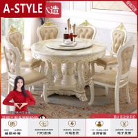 苏宁放心购欧式全实木大理石餐桌椅组合餐厅轻奢大圆桌酒店家用饭桌大小户型A-STYLE