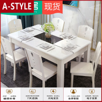 苏宁放心购玻钢石实木餐桌椅组合现代简约家用小户型折叠大理石圆桌带电磁炉A-STYLE
