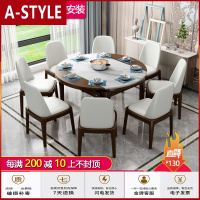 苏宁放心购大理石餐桌椅组合现代简约伸缩折叠圆形实木圆桌小户型家用饭桌子A-STYLE