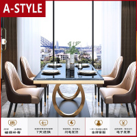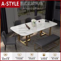 苏宁放心购意式轻奢岩板餐桌长方形大理石后现代美式轻奢风餐桌椅组合A-STYLE家具