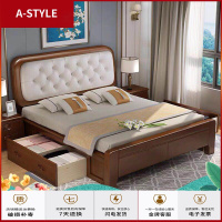 苏宁放心购欧式床全实木床1.8米双人床主卧真皮大床现代简约婚床简欧公主床A-STYLE家具