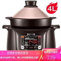 苏泊尔电炖锅陶瓷煲汤锅大容量煮粥自动炖汤电砂炖锅紫砂锅家用5L 褐色5L