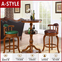 苏宁放心购美式全实木吧台椅组合欧式家用带靠背旋转高脚木椅子复古酒吧转椅A-STYLE