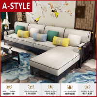 苏宁放心购新中式实木布艺沙发组合现代简约禅意中国风轻奢别墅客厅家具A-STYLE家具