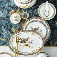 富昱景 碗碟餐具套装景德镇陶瓷欧式家用骨瓷金边碗碟盘套装送礼 56件