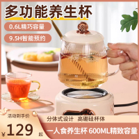 荣事达(Royalstar)迷你养生壶办公室花茶煮茶器电热烧水壶小型容量一人用小号_米色分体式(机械款600ml)