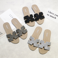 桂兰珊(Guilanshan) 2020新款平底平跟水钻H拖鞋女夏一字拖沙滩韩版时尚外穿凉拖大码