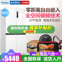 海尔山茶花520L零嵌入式冰箱家用白色十字双对开四门全空间保鲜超薄零嵌冰箱BCD-520WGHTD14GZU1政府补贴