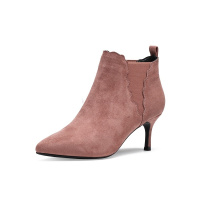珂卡芙尖头高跟女靴2018冬季新款松紧带细跟靴子女甜美百搭短筒靴