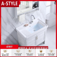 苏宁放心购新款人造石英石盆欧式阳台洗衣柜实木带搓衣板浴室柜洗衣盆洗衣池A-STYLE