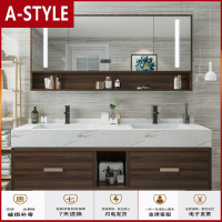 苏宁放心购轻奢双盆浴室柜组合现代简约台上盆智能厕所大理石镜柜洗手台盆柜A-STYLE
