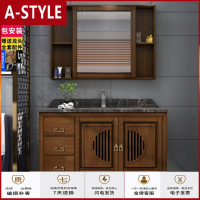 苏宁放心购卫浴新中式实木浴室柜组合落地式洗脸洗手盆镜柜卫生间洗漱台盆柜A-STYLE