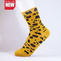 溜哒象LIUDAXIANG【5双装】混色短袜豹纹图案时尚潮流冬季新款纯棉中筒女袜