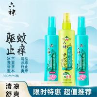 六神花露水长效防蚊快速止痒喷雾清凉液家庭装祛痱蚊不叮清爽[冰莲香]180ml*3瓶+[止痒]180ml*3瓶 6瓶组合装