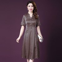 魅言魅语(MeiYanMeiYu)2021夏季新款韩版短袖v领波点印花大码女装妈妈装中长款雪纺连衣裙