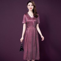 魅言魅语(MeiYanMeiYu)印花连衣裙2021夏季新款韩版短袖中长款收腰v领雪纺大码女装妈妈装