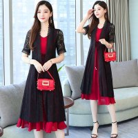 魅言魅语(MeiYanMeiYu)套装连衣裙2021夏季女装阔太太蕾丝披肩中长款显瘦气质过膝裙子妈妈装