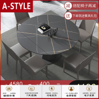 苏宁放心购森创岩板餐桌家用小户型可伸缩旋转长方形变圆形大理石餐桌椅组合A-STYLE